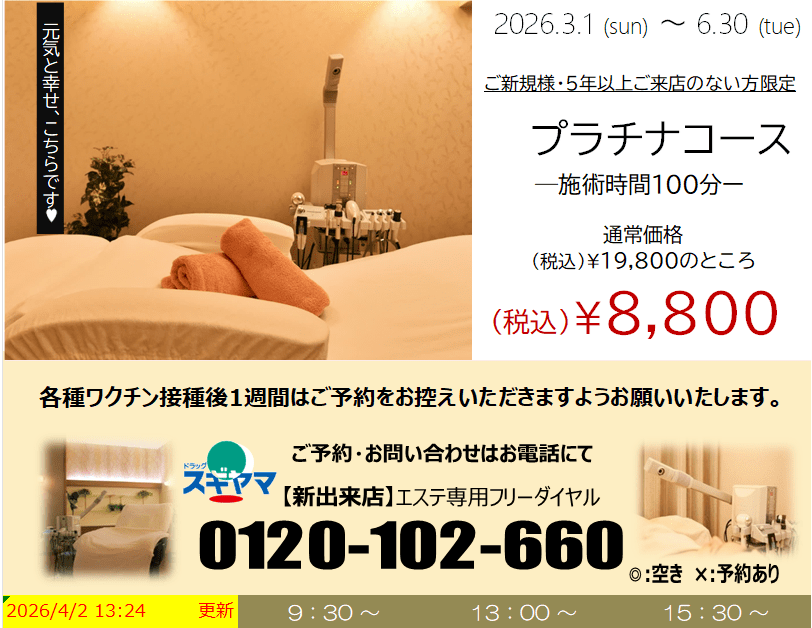 スギヤマエステサロンは、愛知県下6店舗のドラッグスギヤマに併設されております。