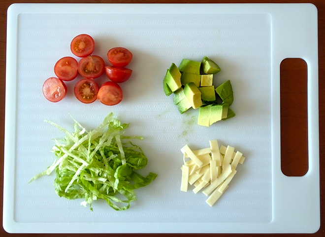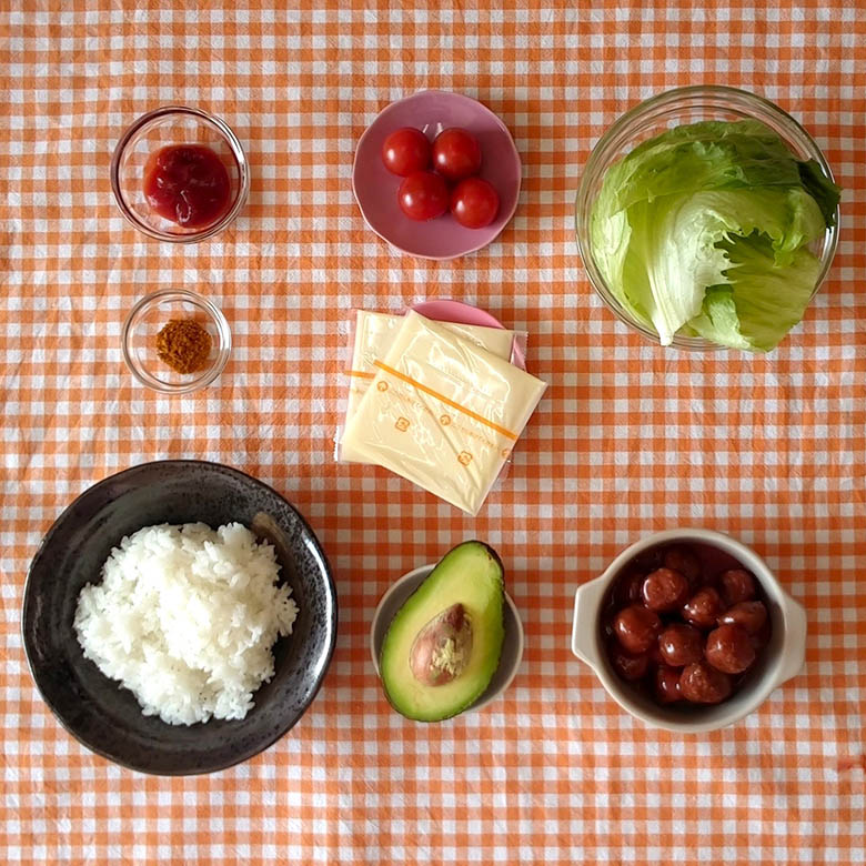 アボカド 1口サイズの四角 スライスチーズ 細切り)。